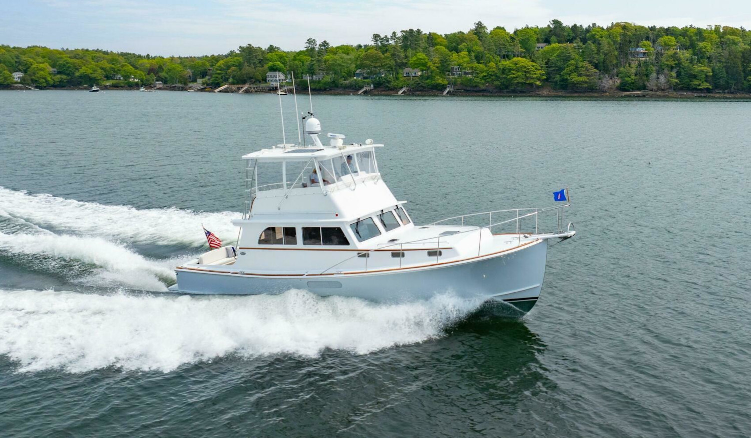 Oasis is a stunning example of the Wilbur 38 Flybridge Cruiser, one of the most respected Downeast designs to come out of Maine.
