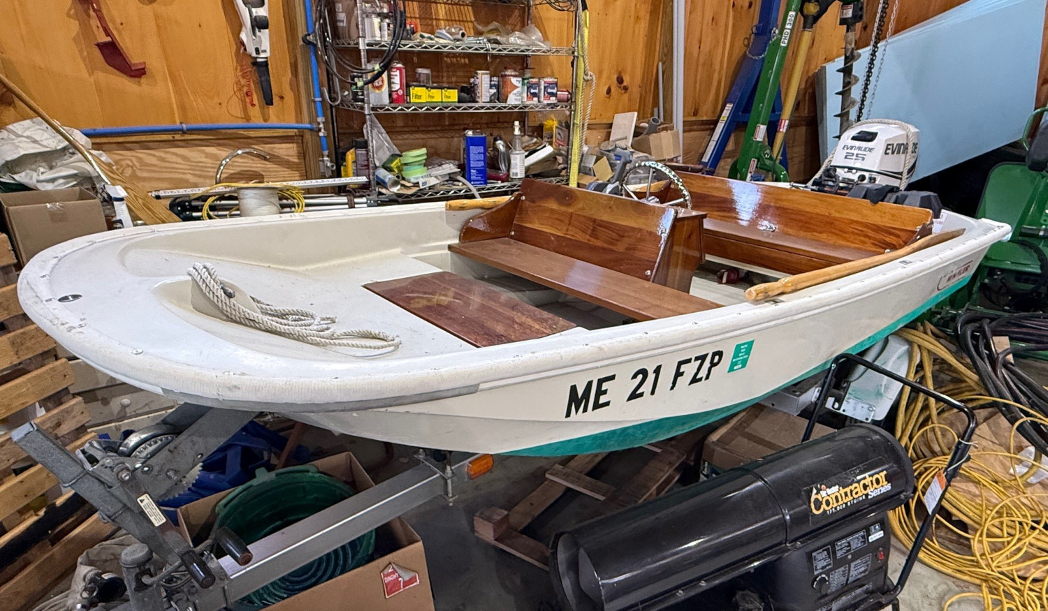 Barn find Boston Whaler 13 Sport. New Evinrude 25HP E-Tec.
