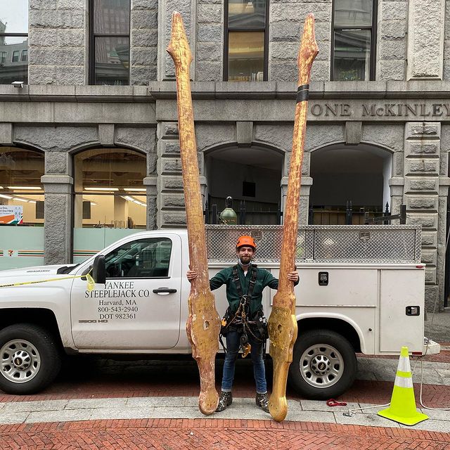 Time was literally of the essence when Lyman-Morse Technologies was contracted by Knollmeyer Construction Corporation in September 2020 to build a set of clock hands for Boston’s iconic landmark Custom House Tower by December. It was never going to be a straightforward job. Among other things, the timing was dependent on the clock tower’s residents – a pair of nesting Peregrine falcons who have made the clock their home for more than 20 years. The four-sided clock is part of the large tower atop the Financial District’s Custom House building, which was completed in 1847. The 495-foot tower and clock were added to the building in 1915-16. The skyscraper was the city’s tallest, before it was eventually surpassed by the Prudential Tower in 1964.