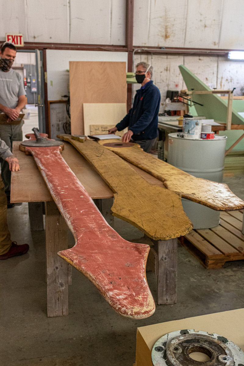 Once the fabrication technique and materials were determined, the LMT team copied the original wooden hands geometry to make the molds. Due to the tight production window, two sets of molds were created to speed up the production process. The Lyman-Morse team added some innovative new features by incorporating the balancing weights into the hands themselves which improved the overall aesthetic appearance. “Lyman-Morse Technologies used the state-of-the-art capabilities of composite construction, design accuracies, and weight tolerances to produce a high-tech replica for this iconic project,” said Drew Lyman, President of Lyman-Morse. “Every time we drive through Boston, we can look at clock and be reminded of the work of our team.” The hands were delivered December 10th. For more information contact: Andrew Smith: asmith@lymanmorse.com or 207-354-6904