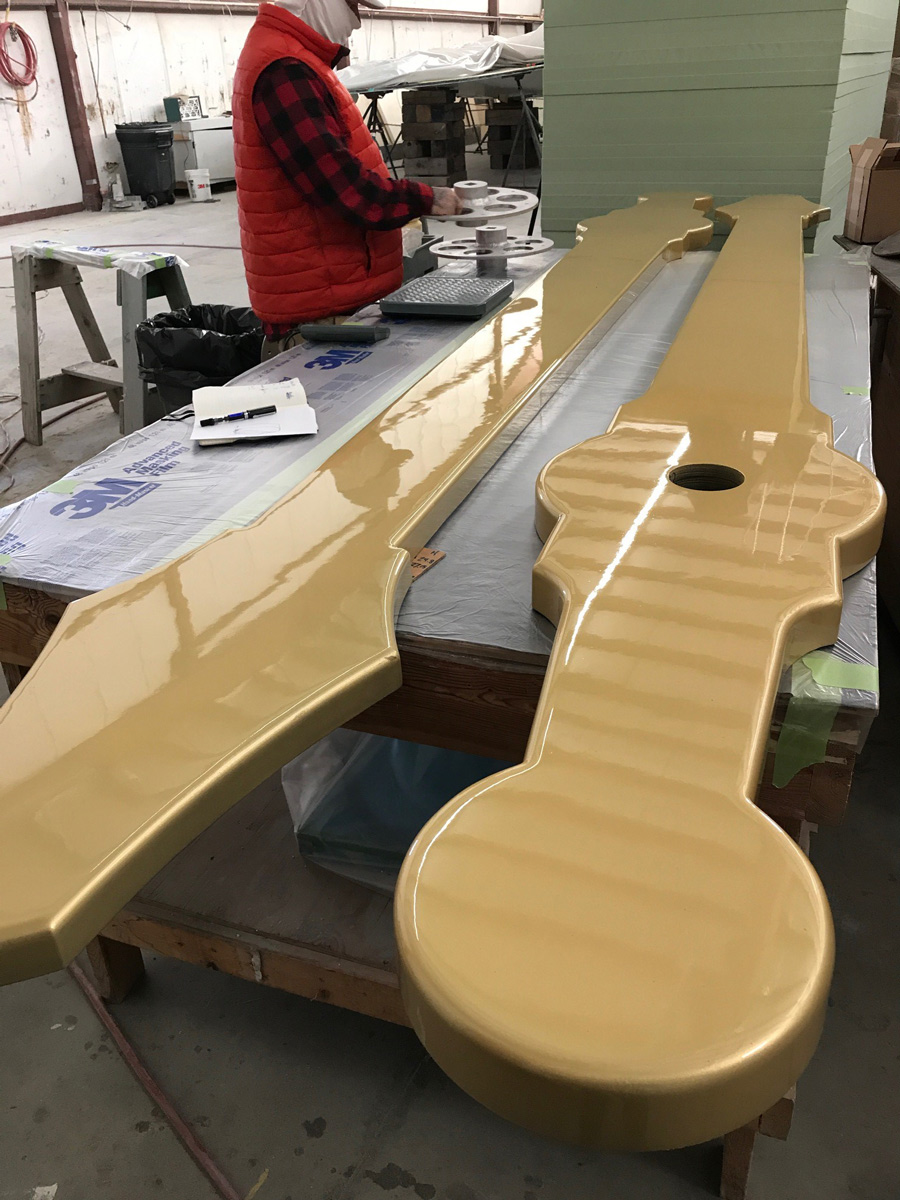 In addition to timing, requirements for the project included weight restrictions, stiffness, weather-resistance and it needed to be historically accurate, requiring a Boston Landmark Commission approved gold finish. The new hands (five sets were made of the minute and hour hands – 4 sets for each of the clock’s faces, plus a spare set) weigh 25lbs each and are made of carbon fiber laminates infused with epoxy resin. “To be sure we were dialing in the correct elements and fabrication techniques, we conducted a Finite Element Analysis to make sure the hands would meet the requirements,” said Andy Smith, Vice President of Lyman-Morse Technologies.