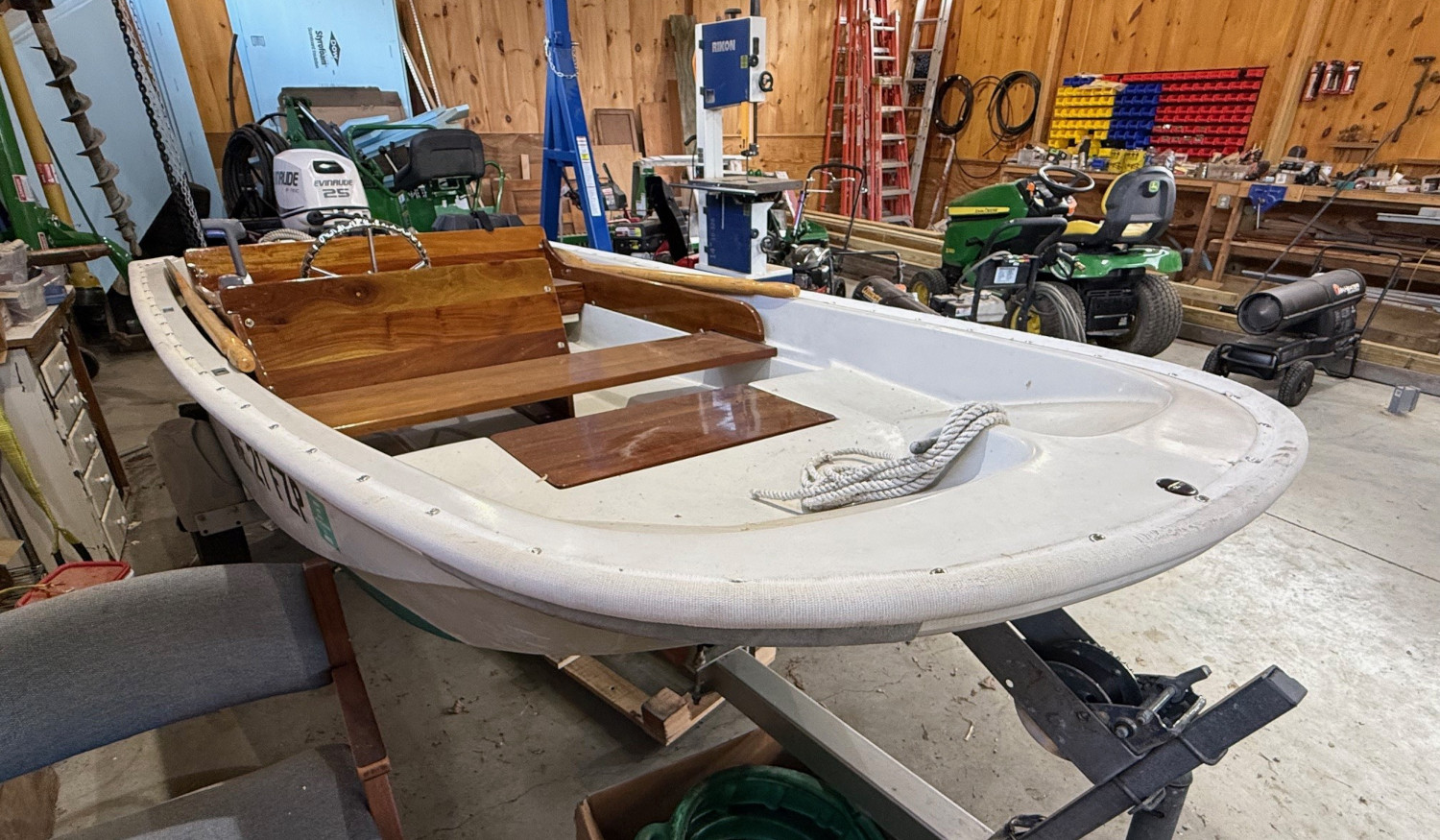 Occasionally, one is lucky enough to stumble upon a special boat. This 13′ whaler was found tucked away in barn after her owners stopped boating a year ago. Her high gloss varnished teak interior woodwork looks like it was just done yesterday. And her new (2017) 25hp Evinrude e-Tec outboard looks like it was just mounted on the transom. With low engine hours and new electric key start feature, this classic 13′ whaler is sitting on her EZ Loader trailer and waiting for a lucky buyer. An iconic boat like this wont be on the market for long.