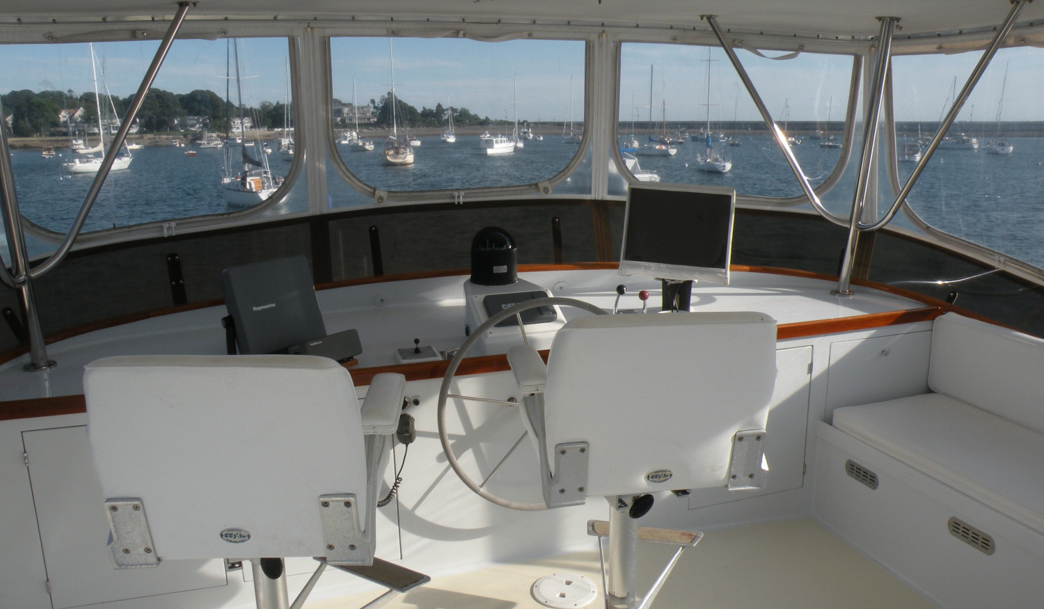 The helm station is starboard forward in the main salon. Standing with full visibility and all your controls to operate Bounder comfortably in all weather conditions.