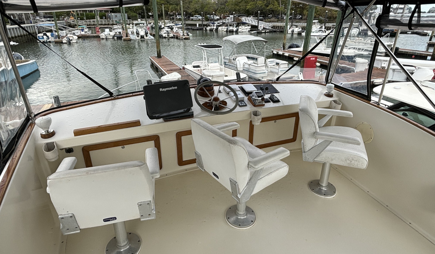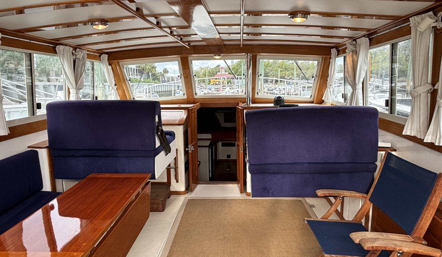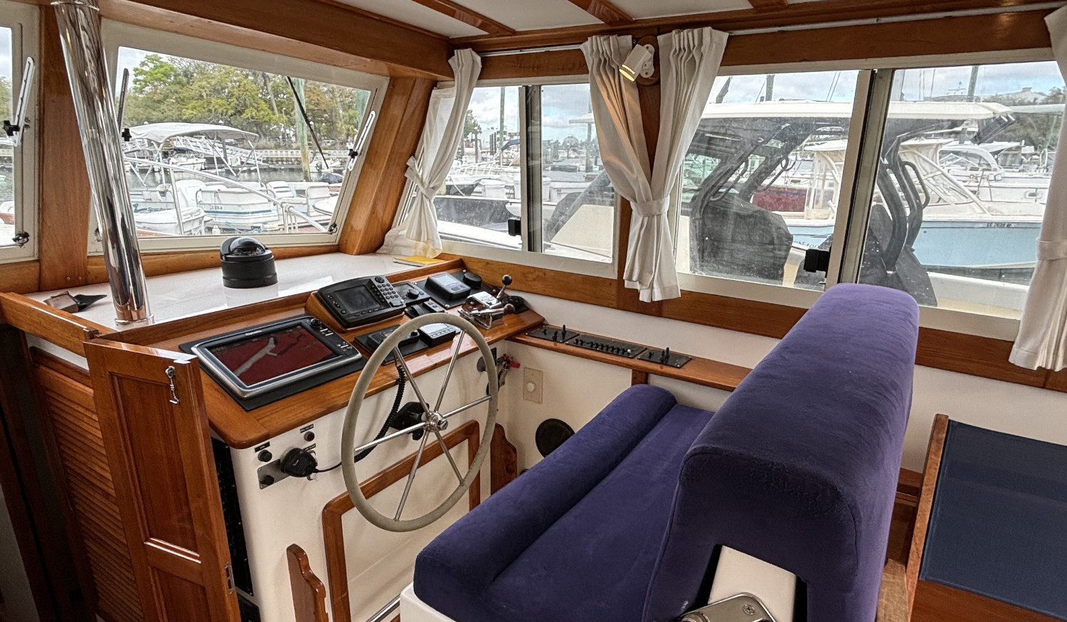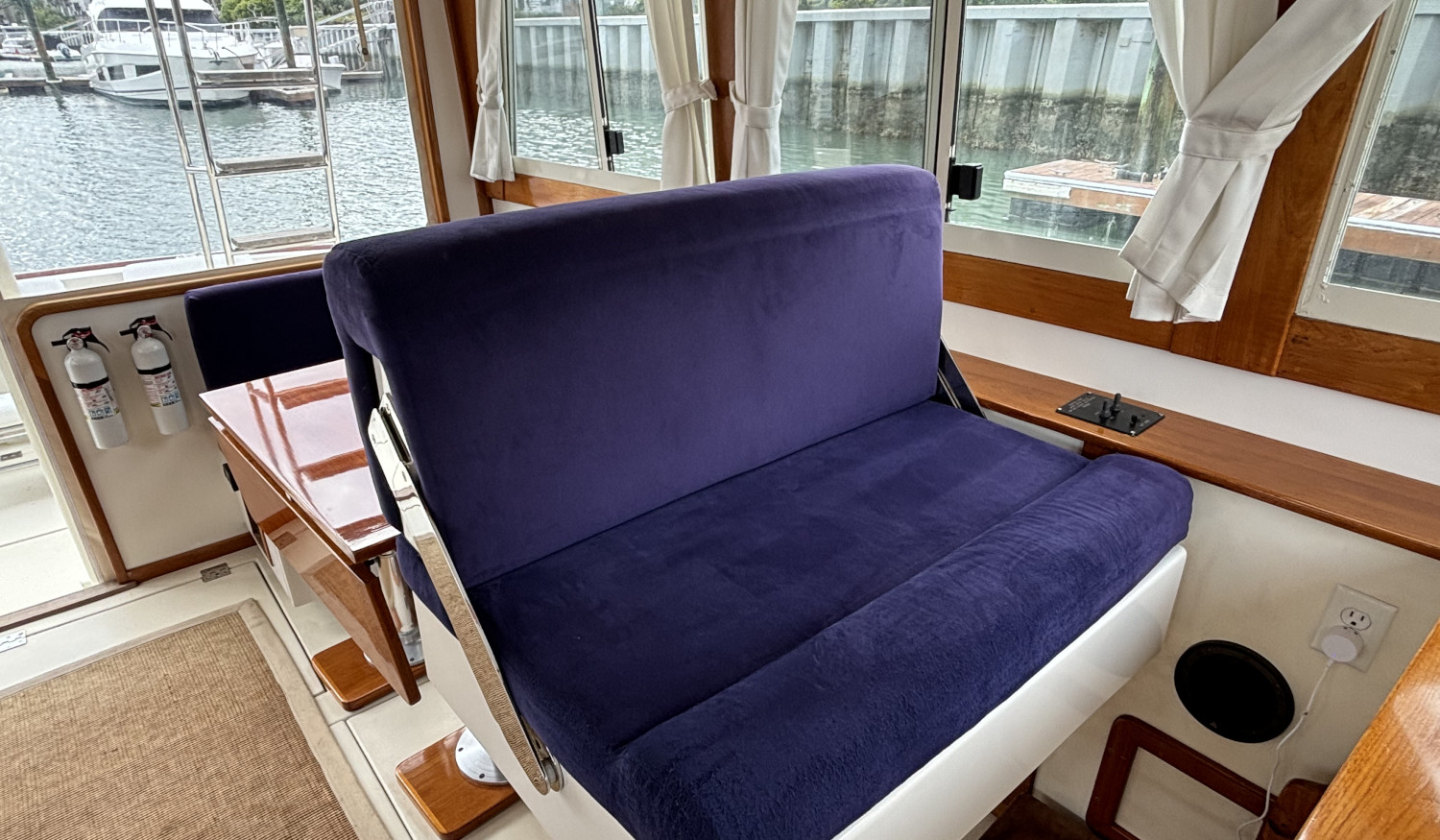 In 2024, she was repowered with a brand-new Yanmar 6LY 440-hp diesel engine—now with under 100 hours—bringing modern reliability and performance to this classic design. Whether you’re cruising at a comfortable pace or need to make time ahead of weather, this upgrade adds serious value and peace of mind.