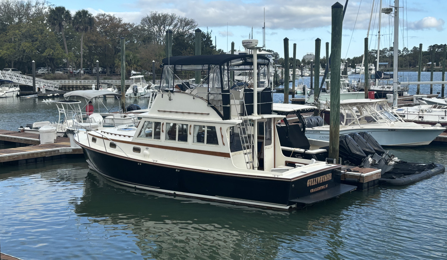 Built for a seasoned yachting couple with an eye for craftsmanship and coastal cruising, GULLYWHUMPER is a beautifully maintained Ellis 36 Flybridge that showcases Ellis Boat Company’s timeless design and renowned quality. Originally named Sarah J, she was purpose-built for exploring the Maine coast, she blends traditional Downeast lines with smart, custom details throughout.