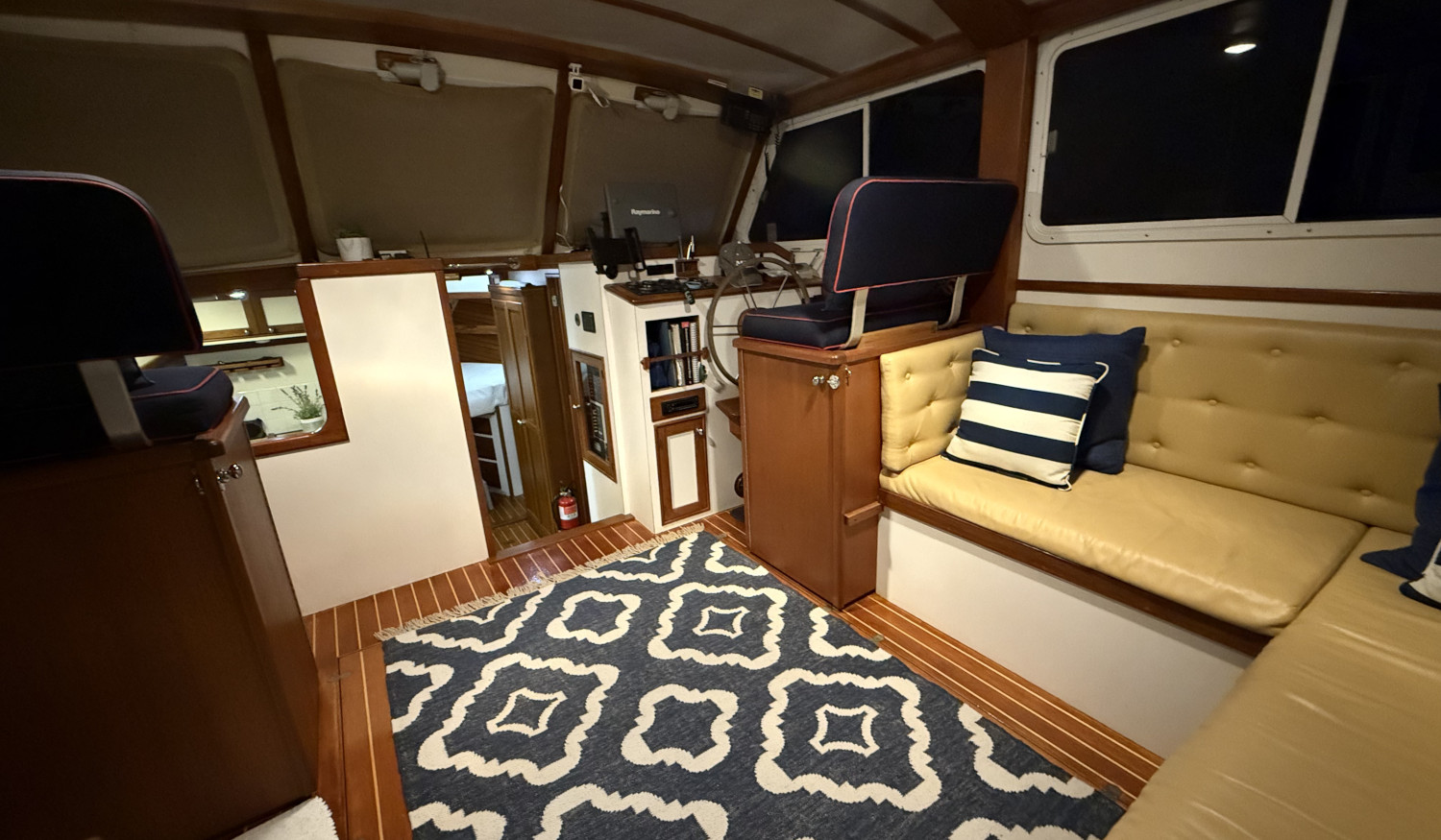 Highlights include a Volvo TAMD63L 318 HP diesel (repowered in 2004, only 1,500 hours), Vetus bow thruster (new 2019), Webasto 16,000 BTU air conditioning (new 2020), and a Lewmar windlass (new). Her layout offers a warm and inviting salon, a well-equipped galley, an enclosed head with shower, and a comfortable forward stateroom—ideal for extended cruising or elegant weekend getaways.
