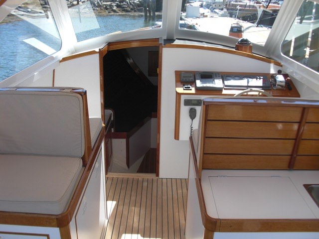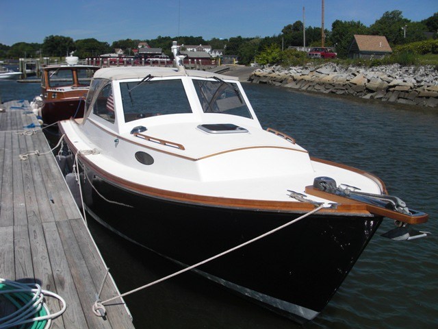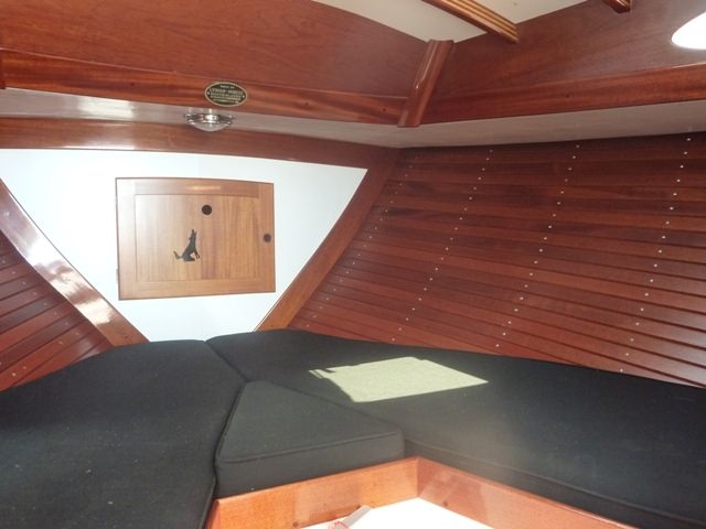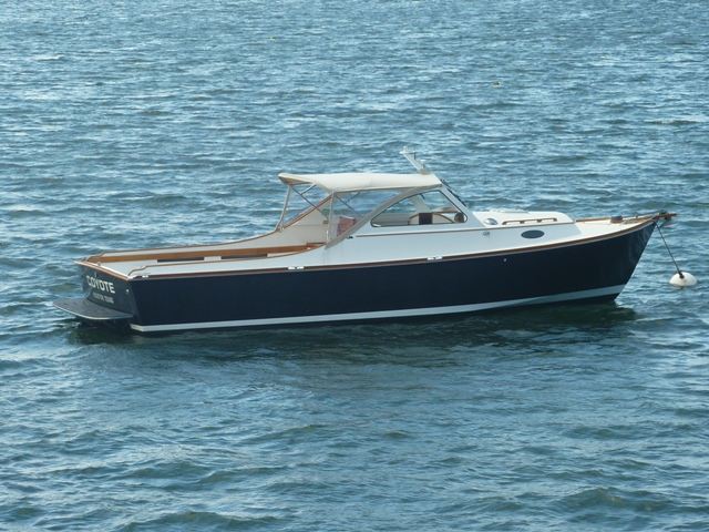Coyote has black topsides with a white boot stripe and darkk green bottom paint. The deck is white gel coat with high gloss varnished mahgony toerail, eyebrow, coaming, and handrails. The linen Sunbrella navy top covers the two forward bench seats. There is one Bomar hatch on the cabin and two port lights. There are two bench seats in the cockpit made of Formica with varnished mahgony trim. The back of the helm seat has a propane burner and built in cooler. There is also a cooler below the helm seat. The port bench has seats forward and aft. There is an engine box in center of the deck with a settee aft. There are beige cushions for all seats. The cockpit sole is raw teak in excellent condition. The interior has a large “V” berth made of Formica and varnished mahgony with black Sunbrella covered cushions. There are Ocean Frigast reading lights port and starboard. The ceiling strips are deep red varnished mahgony. The forward bulkhead door leading to the chain locker has a coyote and moon sihouette cut into it. There is a private head on starboard and upper and lower cabinets on port with a large surface for charts. Raytheon Chartplotter RC530 Raytheon ST60 Raytheon RAY53DSC VHF 4-Optima Bluetop Marine Starting batteries Bass electrical panel-DC Morse engine controls Rule bilge pump Maxwell electric windlass Ritchie compass AFI elcetric windshield wipers Wilcox head Wash down pump.