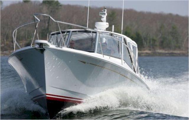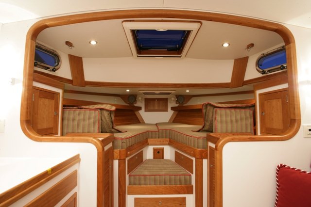 We continued our thoughts and plans for almost a year. After a spin on Annie Rose that was nearing completion, he was satisfied he had found the performance he was looking for and we began to build MAESTRO, the second of this great, custom jet boat design. He had been looking for a fast, dry boat with a comfortable ride. The new boat’s layout is slightly different below than the other 38 jet which was designed as a hardtop. She is powered by twin 440 hp Yanmars and twin 292 Hamilton jets, giving her a top speed of 37 knots and a cruise in the low 30s.
