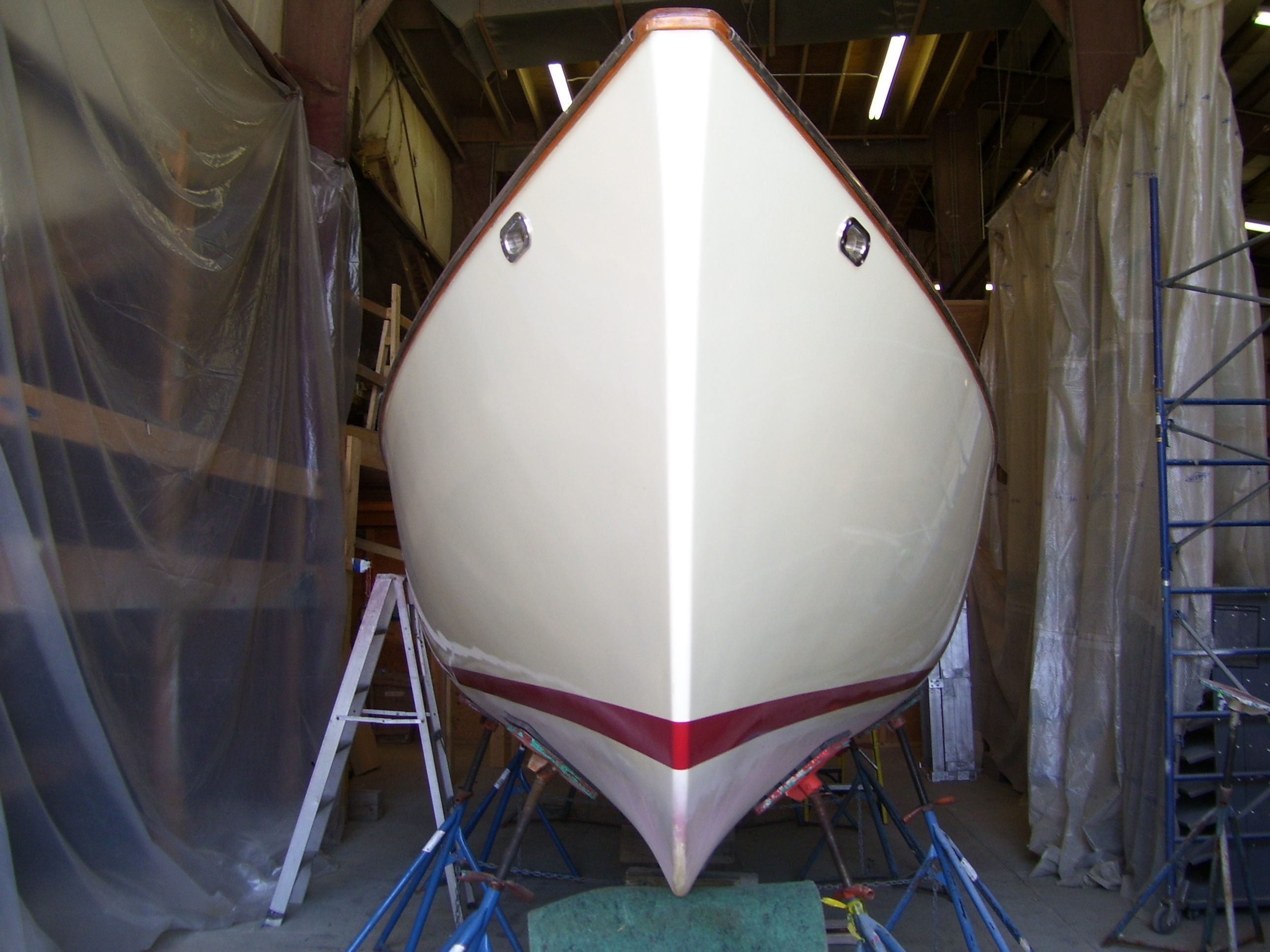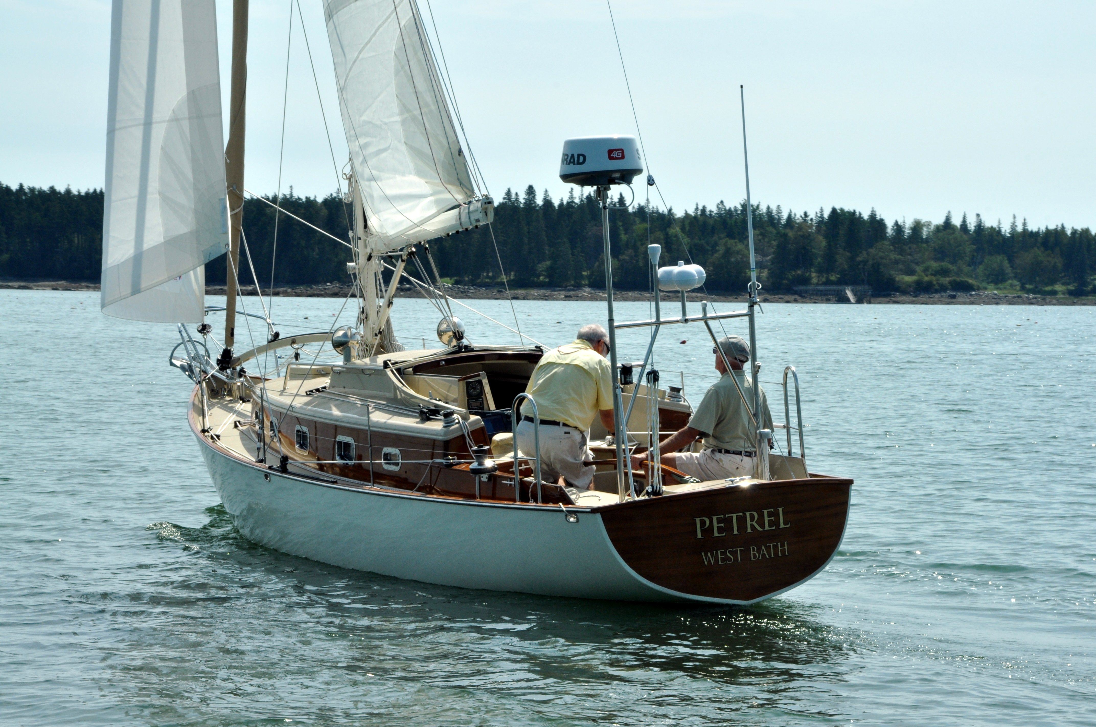 Despite 30 years in the making, Petrel was largely a 32’ hull and deck with a forward and aft bulkhead and miscellaneous pieces and parts when she arrived at Lyman-Morse.   She arrived by truck from the owner’s home in West Bath and settled in for a winter-long work list to get her completed and ready to sail the following spring.