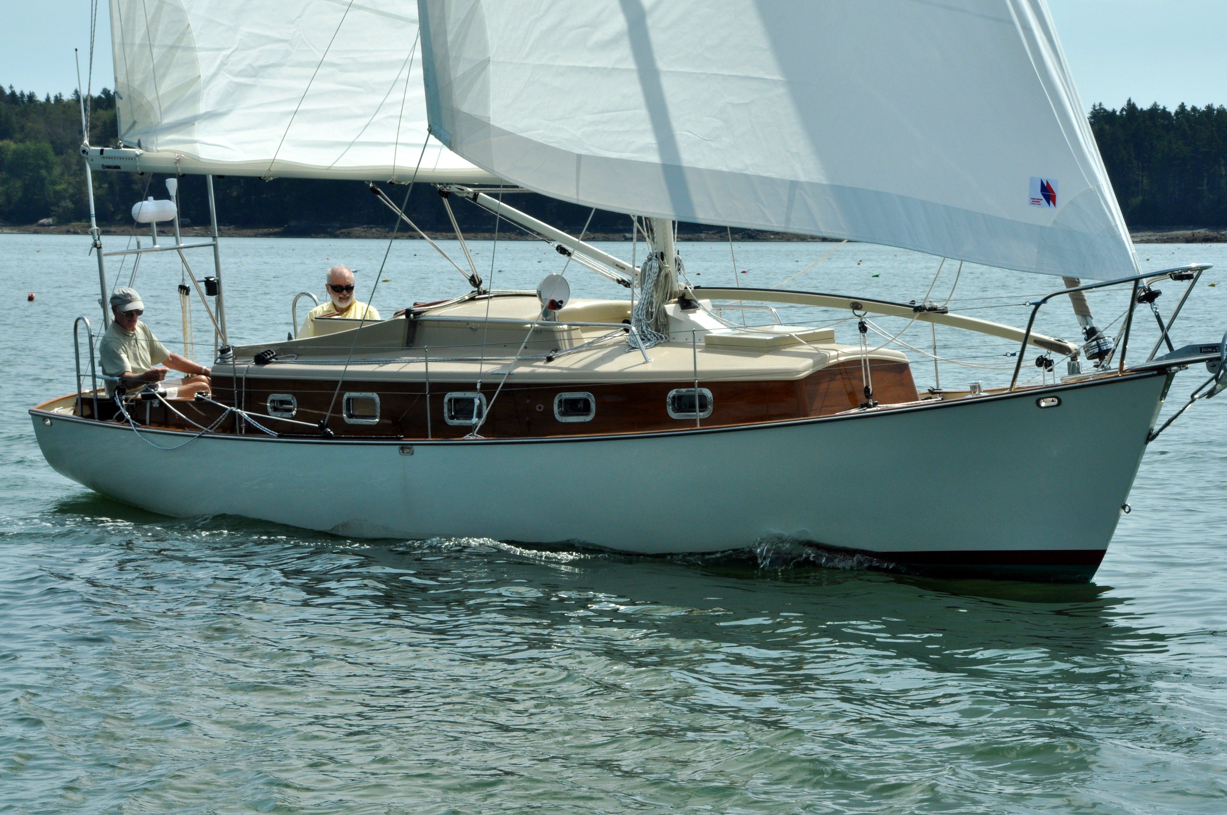 The same useful volume of contemporary 28-30’ boats, albeit with 8’ beam