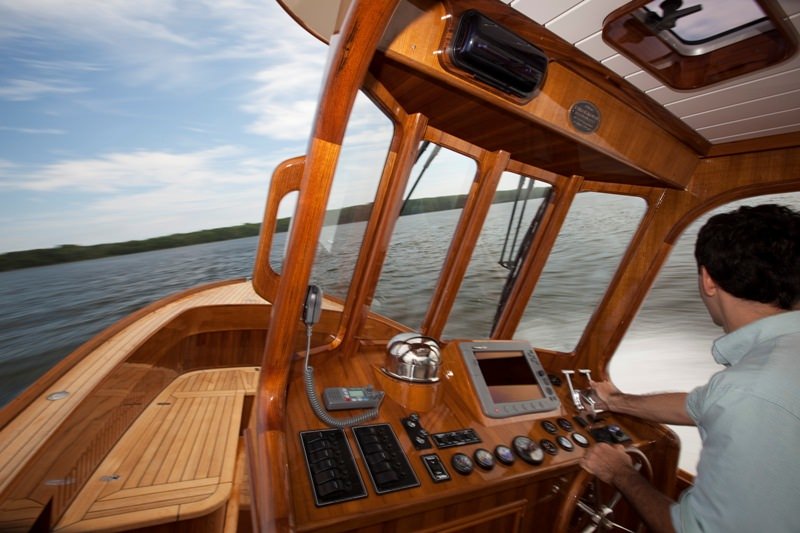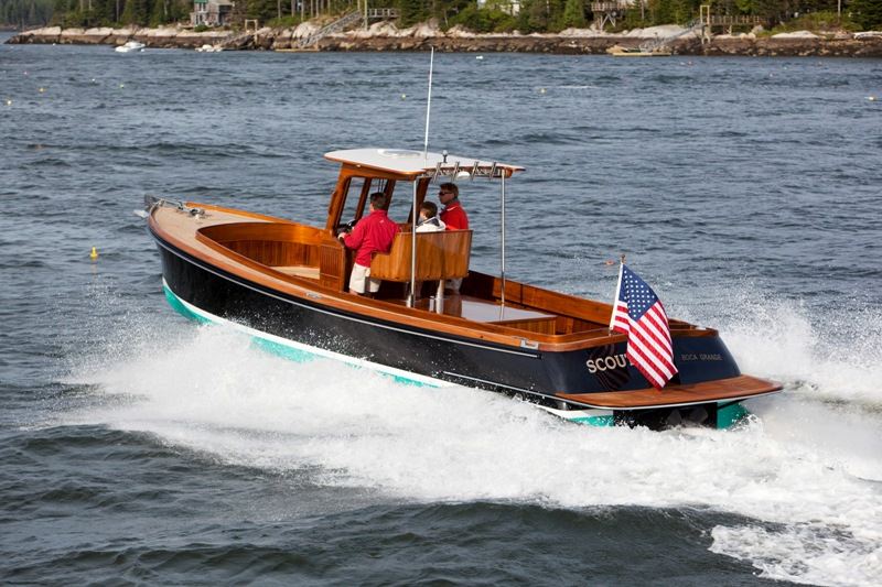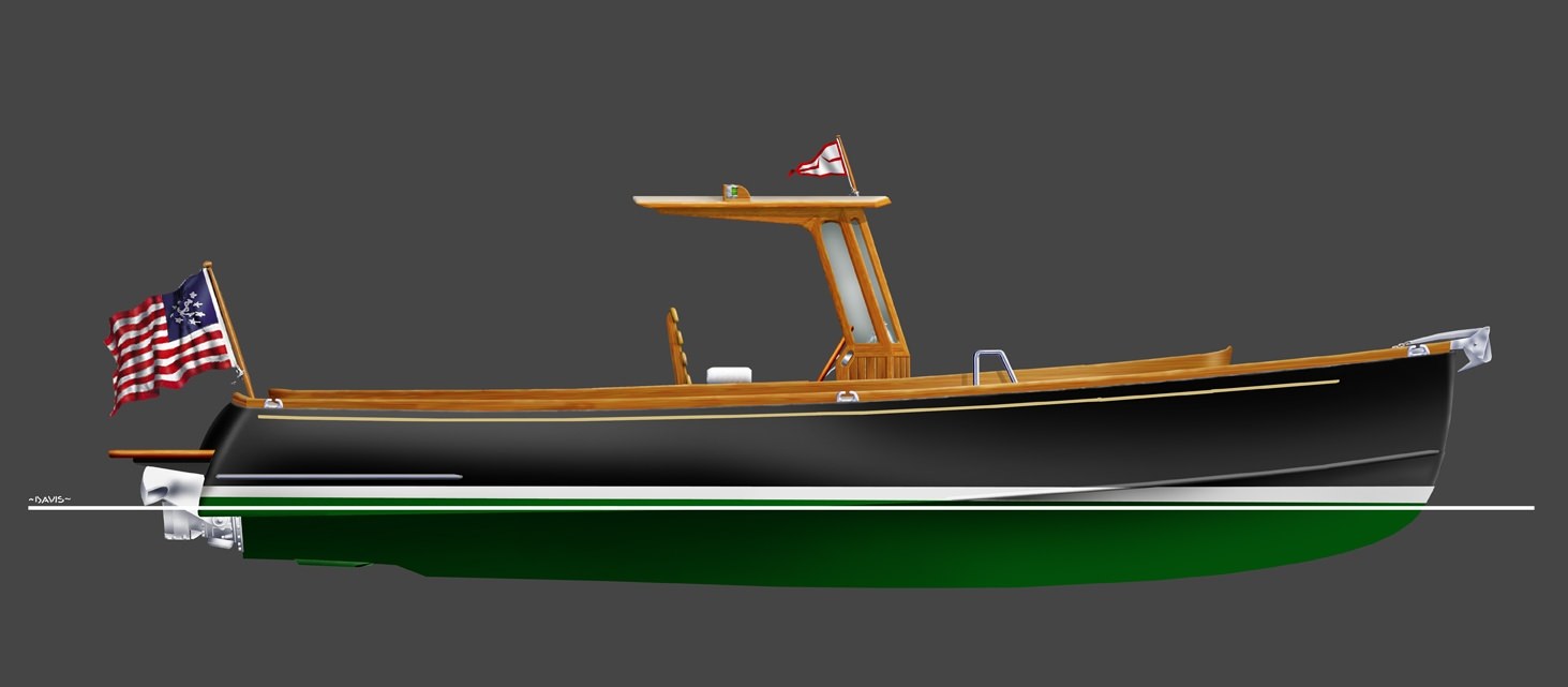 Jeff and Meg Pierce have returned to us for another classic looking boat in the vein of the rumrunners of old. While their first boat built with us, COMET, has been a huge success for their use on the Cape, the new boat will be heading to the west coast of Florida for picnics and short junkets. Aluminum-built, the 31′ open center console features plenty of teak and varnished wood on her as well. She is powered by a 422 hp Volvo D6-435 diesel connected to a Hamilton 292 Jet for a top speed of 34 knots. Dieter Empacher designed her as he did with their companion commuter express launch COMET. Jeff’s company, Pierce Aluminum, supplied all the water jet cut aluminum plate for this project which makes the layout so much easier. The aluminum hull construction phase was the third done completely by Lyman-Morse at our metal fabrication facility just a short distance from our main yard.