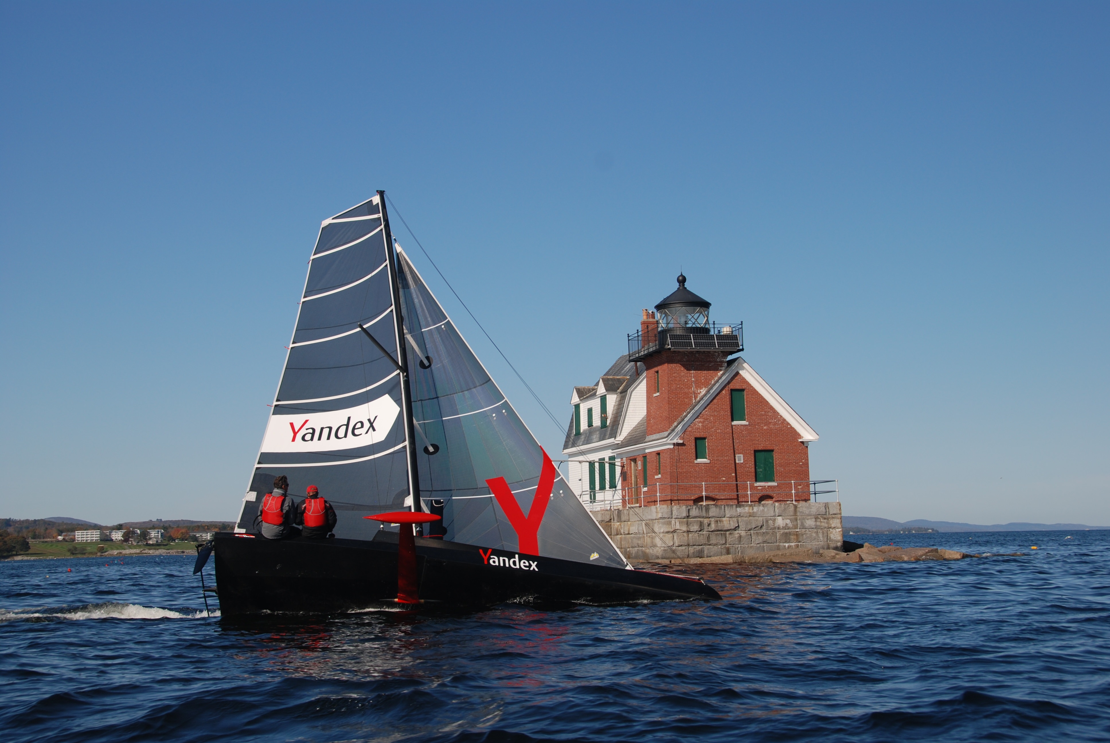 Raw (unedited) footage of SpeedDream27 flying its keel in sail trials off Rockland, Maine.