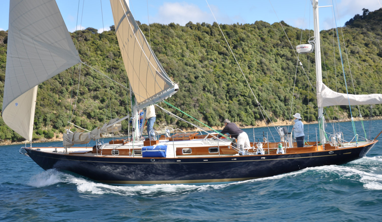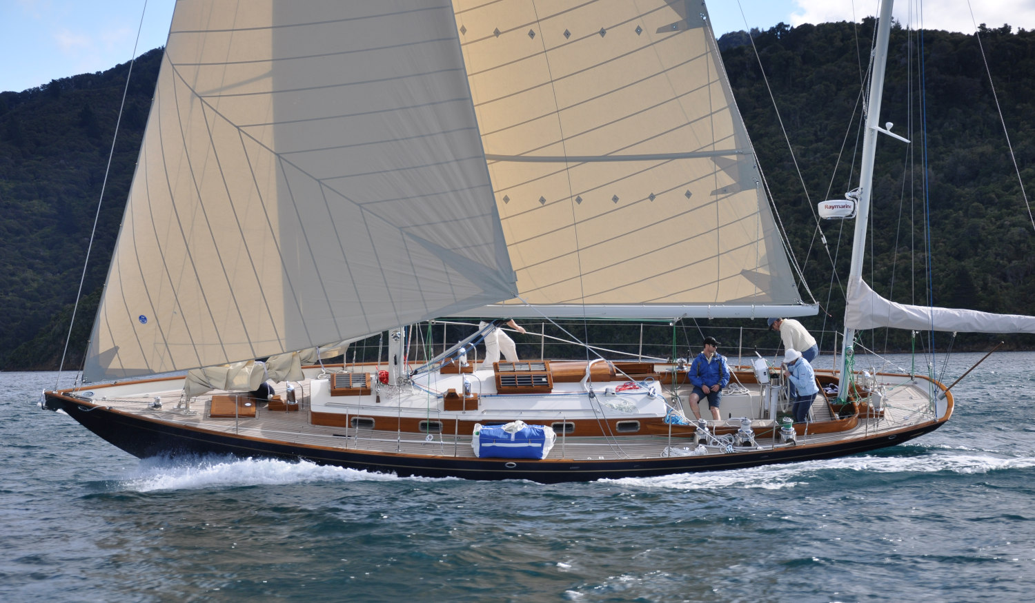 - Main and Mizzen masts and booms are painted (cream) aluminum and built by Yacht Spars, NZ