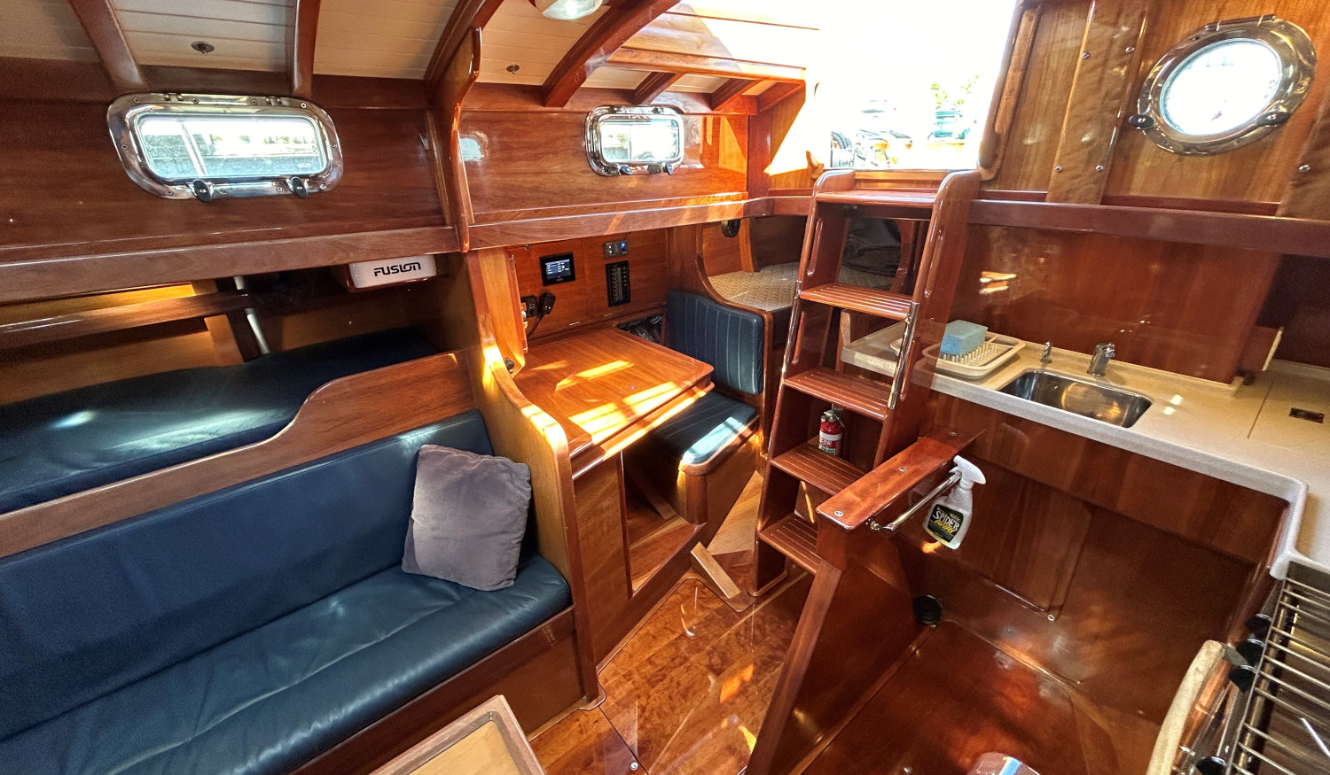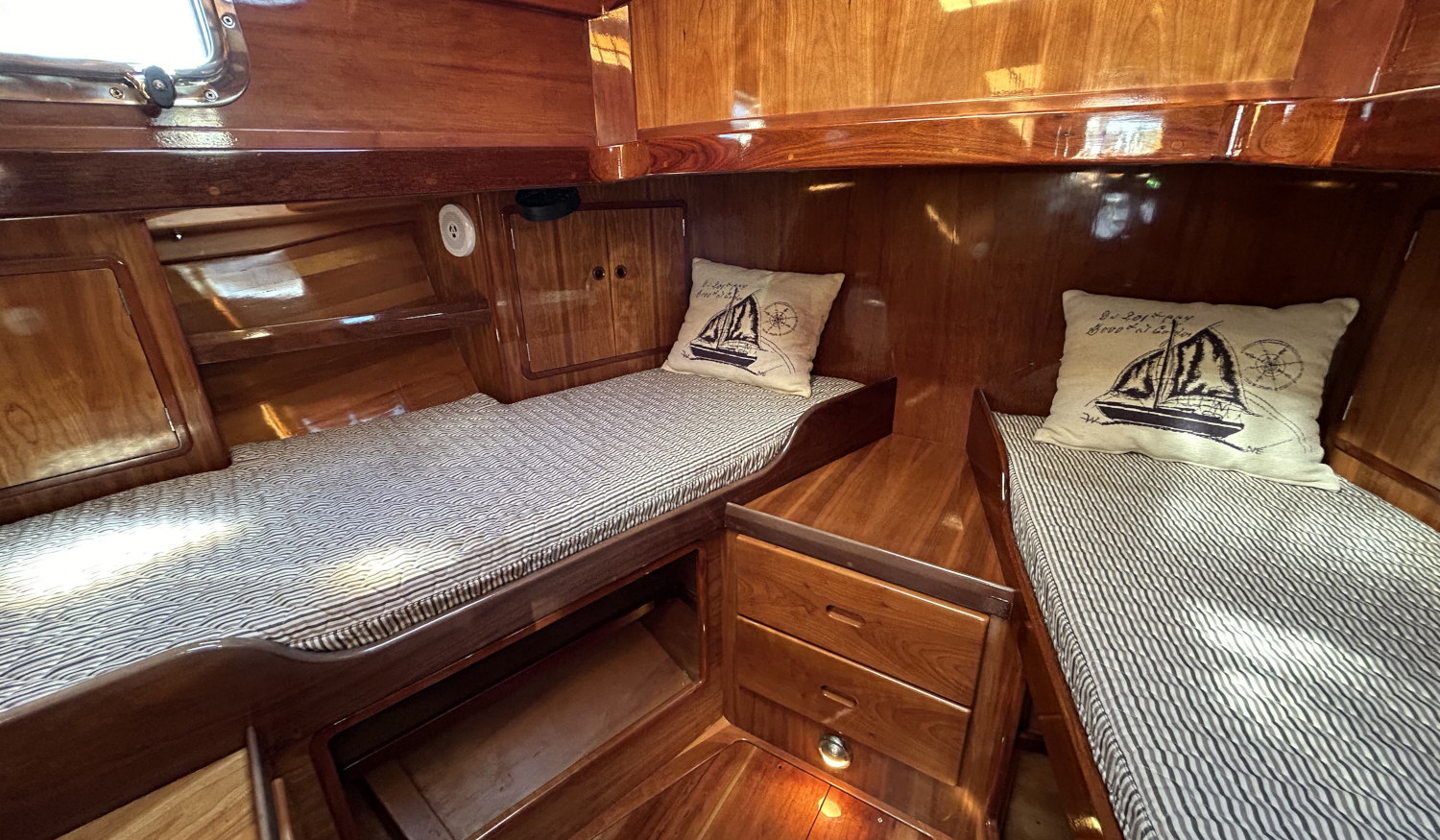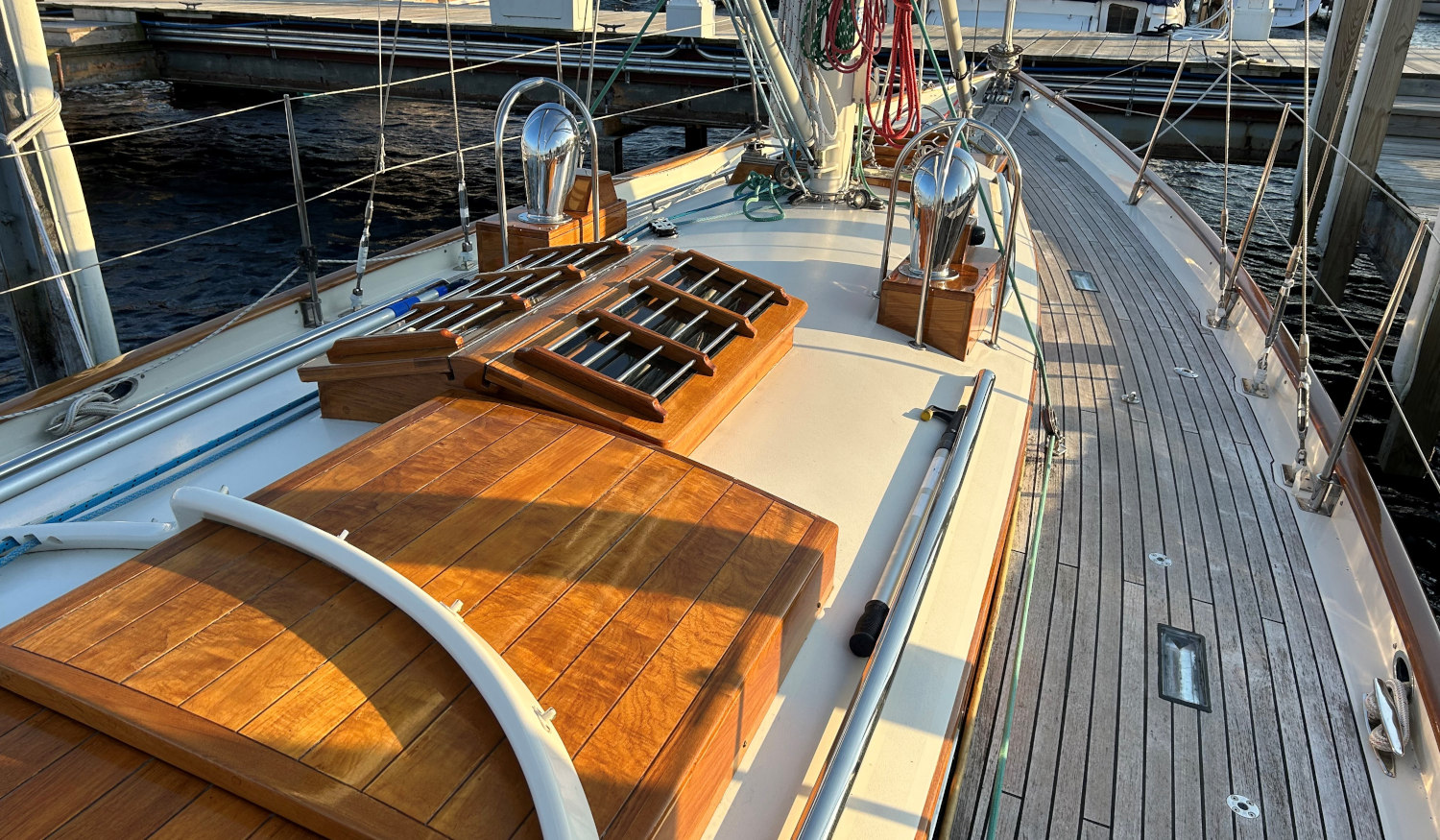 Theodora is not just another S&S design, she is what many consider one of the finest designs born from none other than Olin Stephens himself. Originally designed as S/V Revonoc #602, Theodora’s hull lines remained unchanged, preserving her original performance characteristics. But to enable short-handed sailing, her sail plan and interior were adjusted slightly to meet modern day convenience. She sails very well in light air and can make 9 kts of speed with only 15kts of wind. Comfortable, solid, stiff, and balanced, this design is timeless and perfect for the discriminating yachtsman who enjoys standing out in a classic regatta or privately gunk-holing in anchorages anywhere in the world. Currently in Northport, MI, Theodora is comfortably nestled in her winter storage building but little needs doing for her Spring launch 2025.